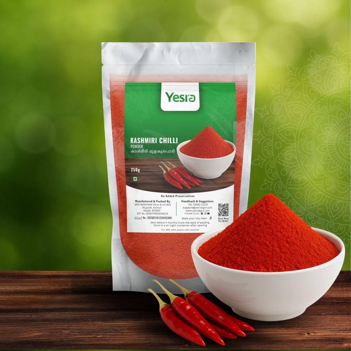 At YESRA, we maintain the highest standards of purity and quality. Our Kashmiri Chilli Powder is 100% natural, free from preservatives, synthetic colors, and artificial flavor enhancers, ensuring every pack delivers only the genuine goodness of real Kashmiri chillies.
